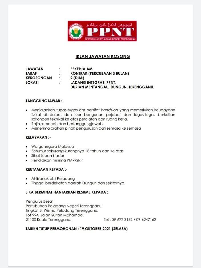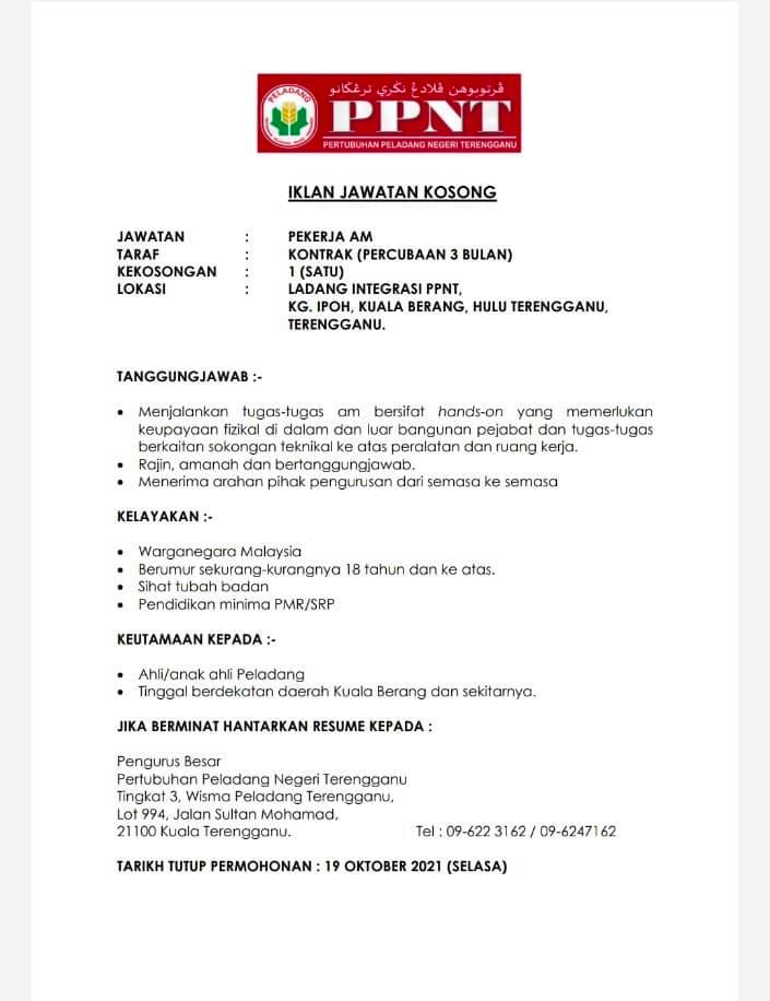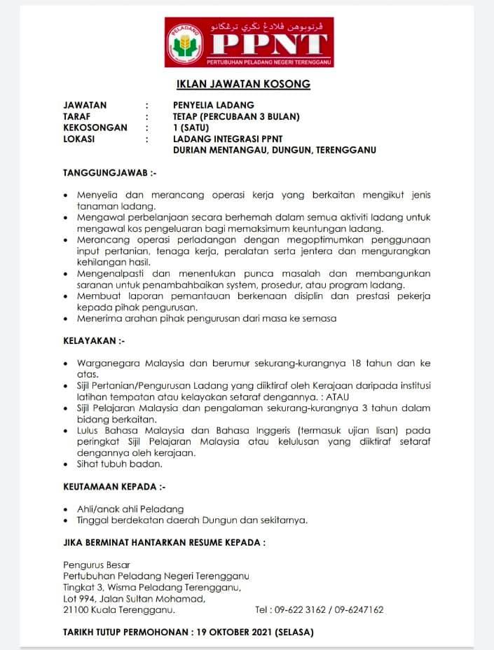 Iklan Jawatan Pertubuhan Peladang Negeri Terengganu