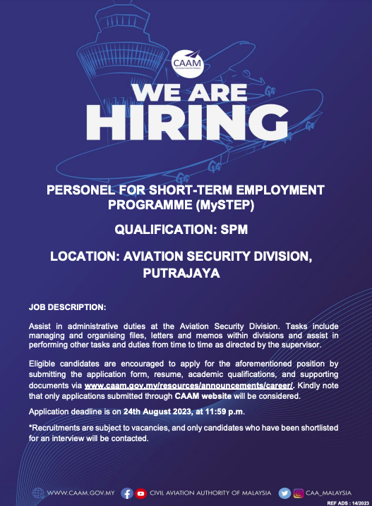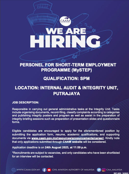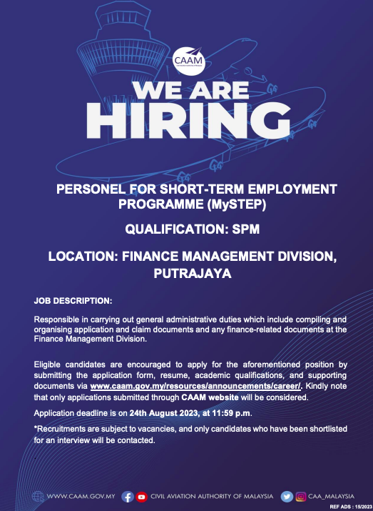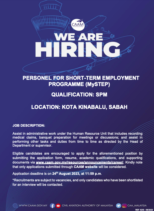 Iklan Jawatan Pihak Berkuasa Penerbangan Awam Malaysia (CAAM)