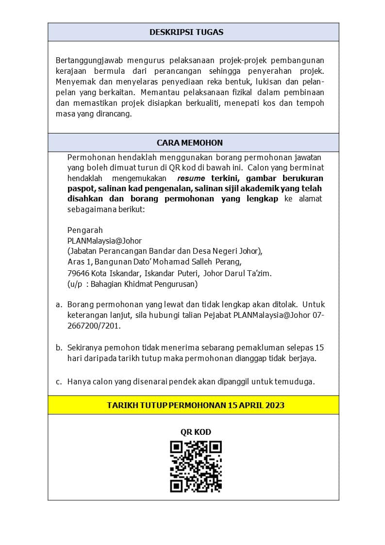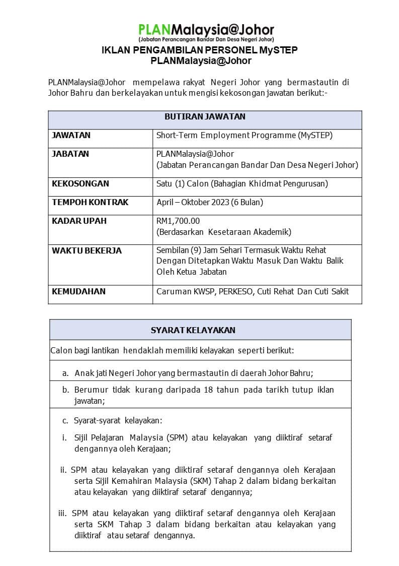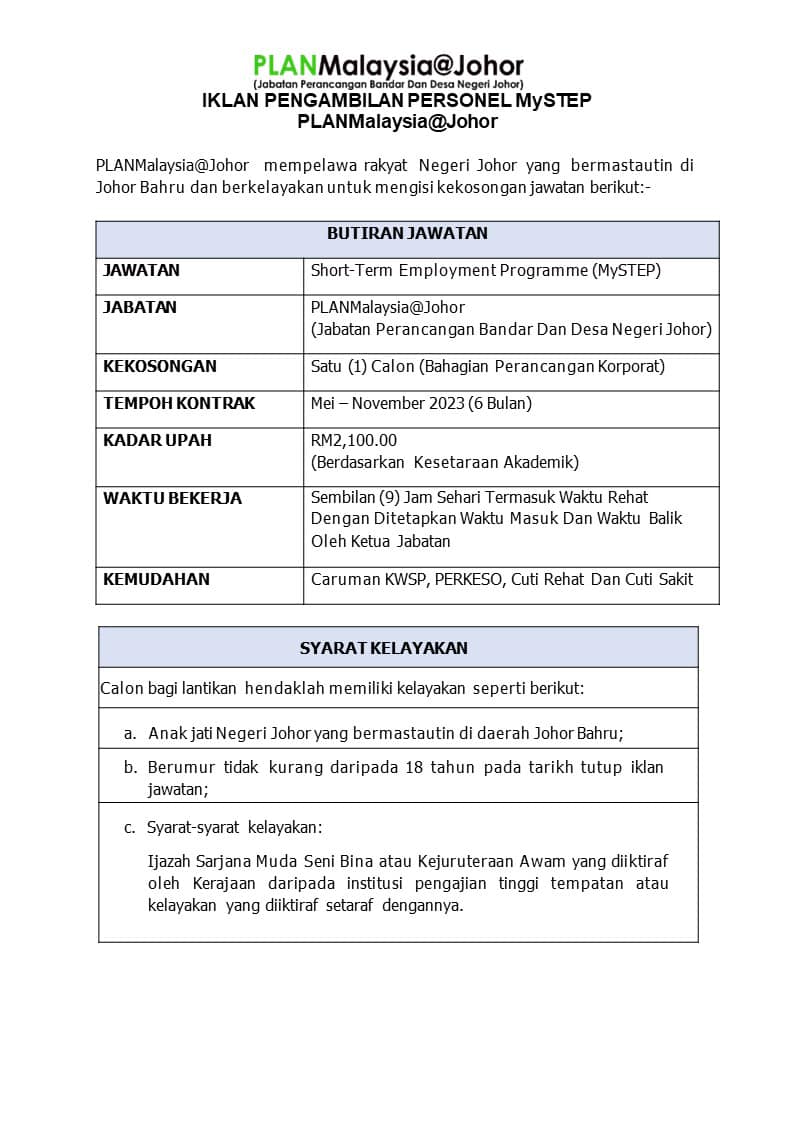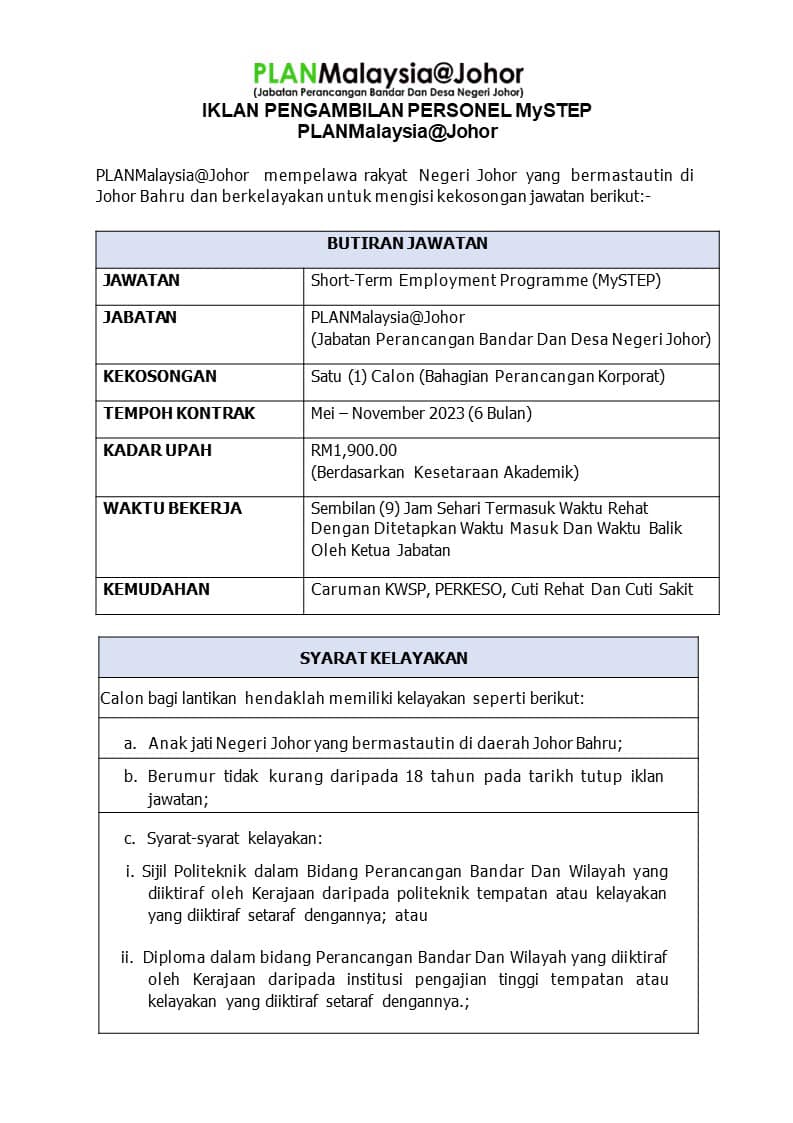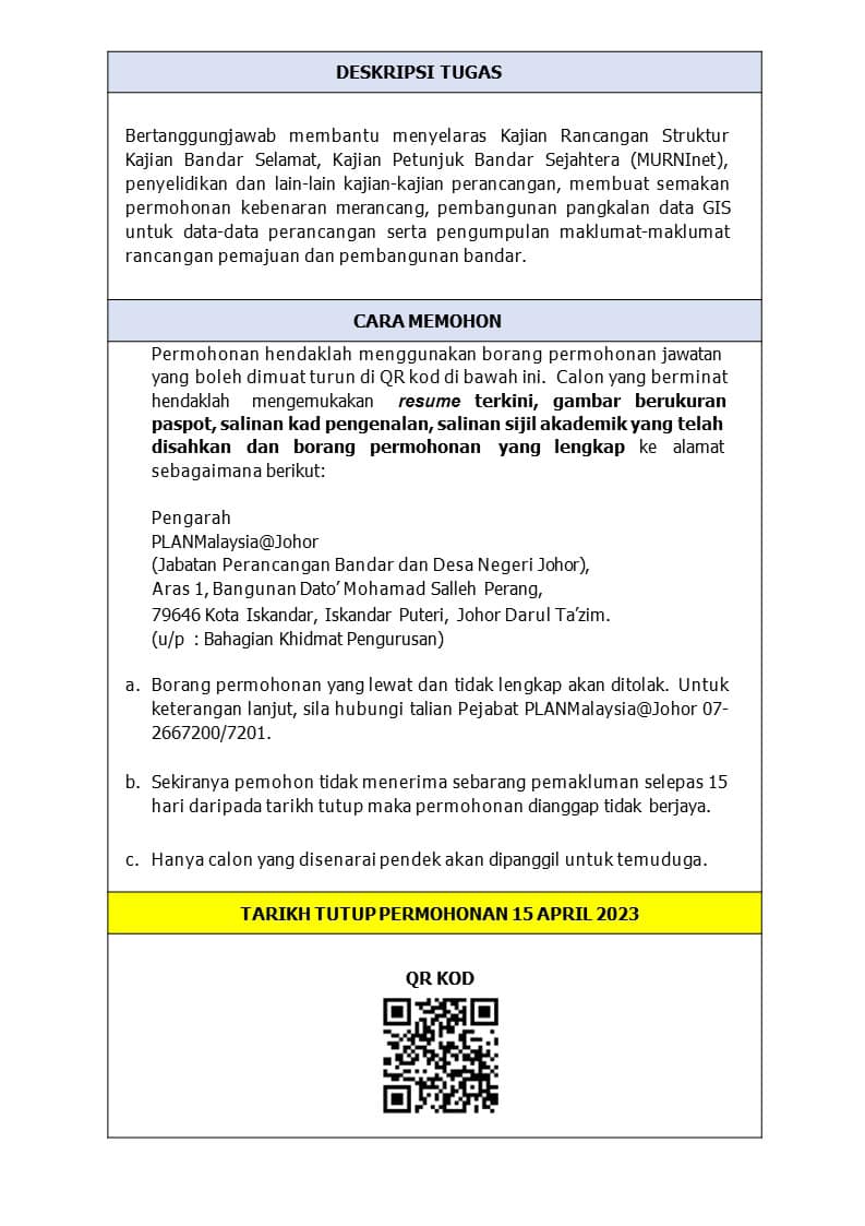 Iklan Jawatan PLANMalaysia Johor