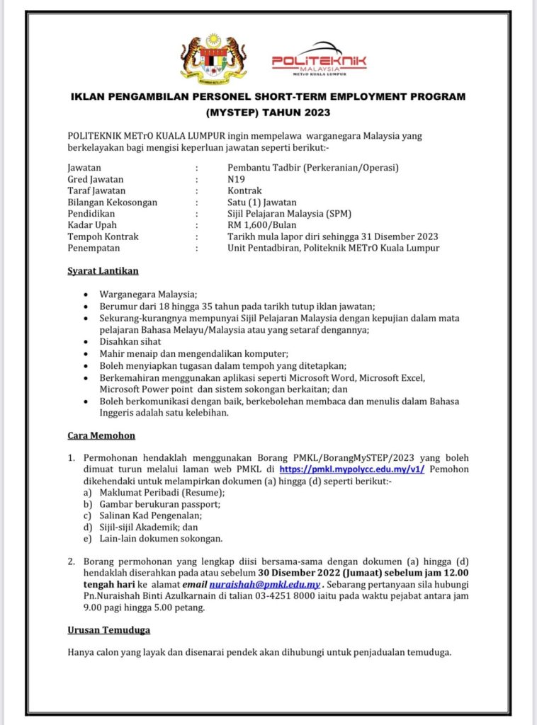 Iklan Jawatan Politeknik METrO Kuala Lumpur