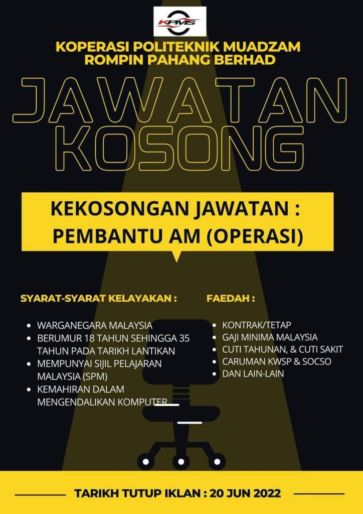 Iklan Jawatan Politeknik Muadzam Rompin Pahang Berhad