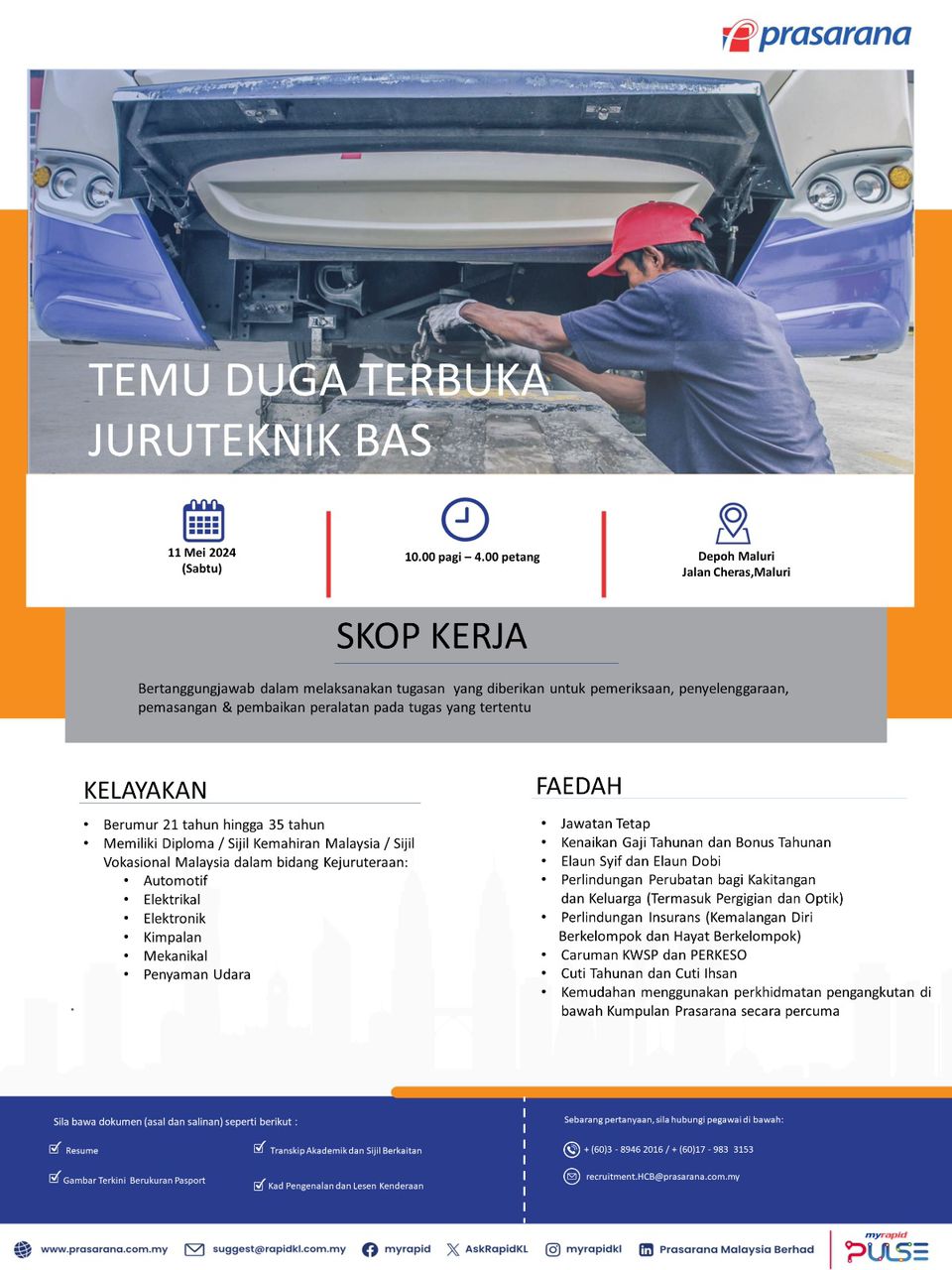 Iklan Jawatan Prasarana Malaysia Berhad