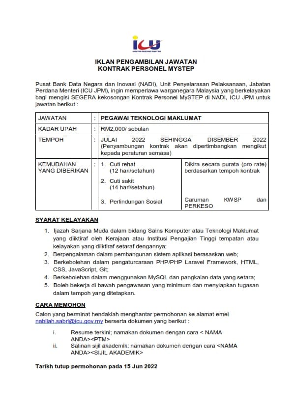 Iklan Jawatan Pusat Bank Data Negara Inovasi (NADI)
