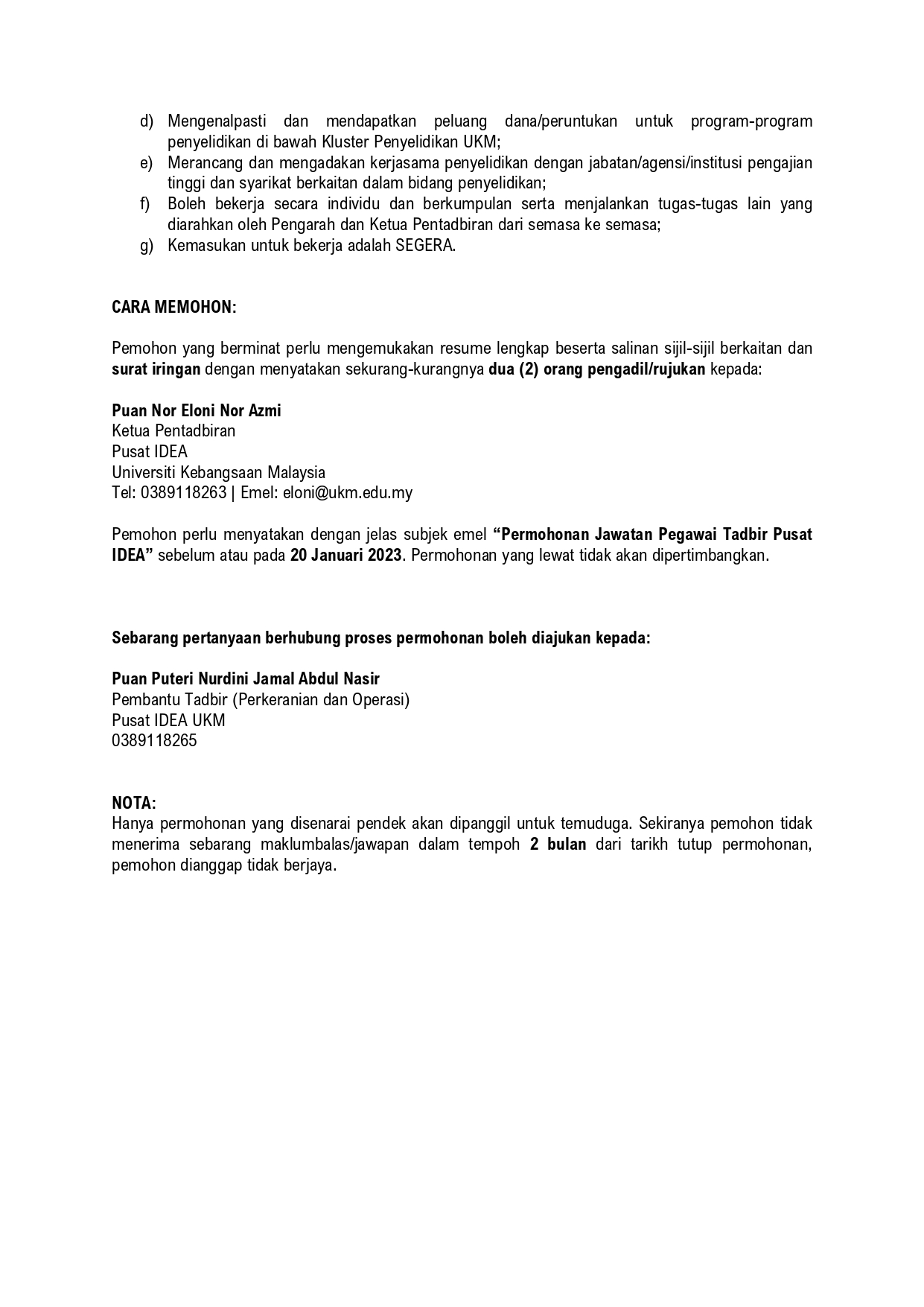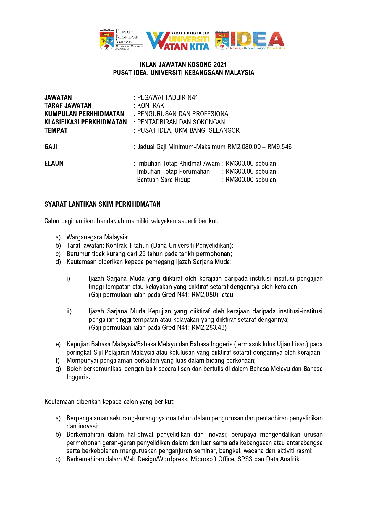 Iklan Jawatan Pusat Idea Universiti Kebangsaan Malaysia