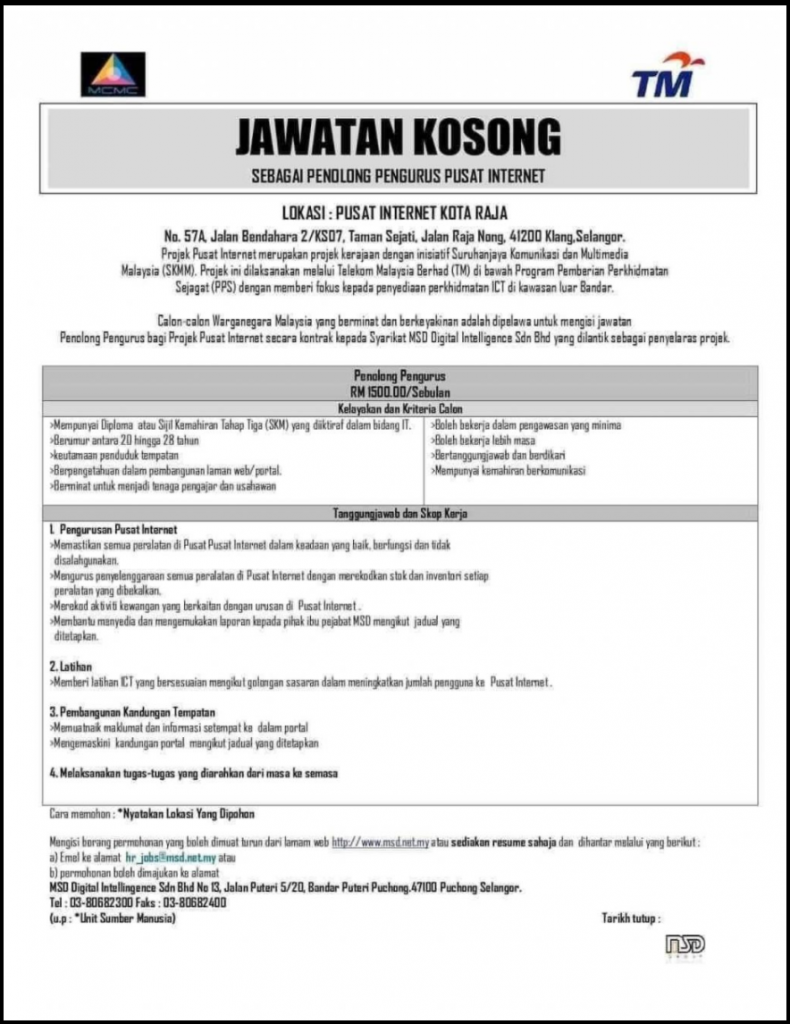 Iklan Jawatan Pusat Internet Komuniti Kota Raja