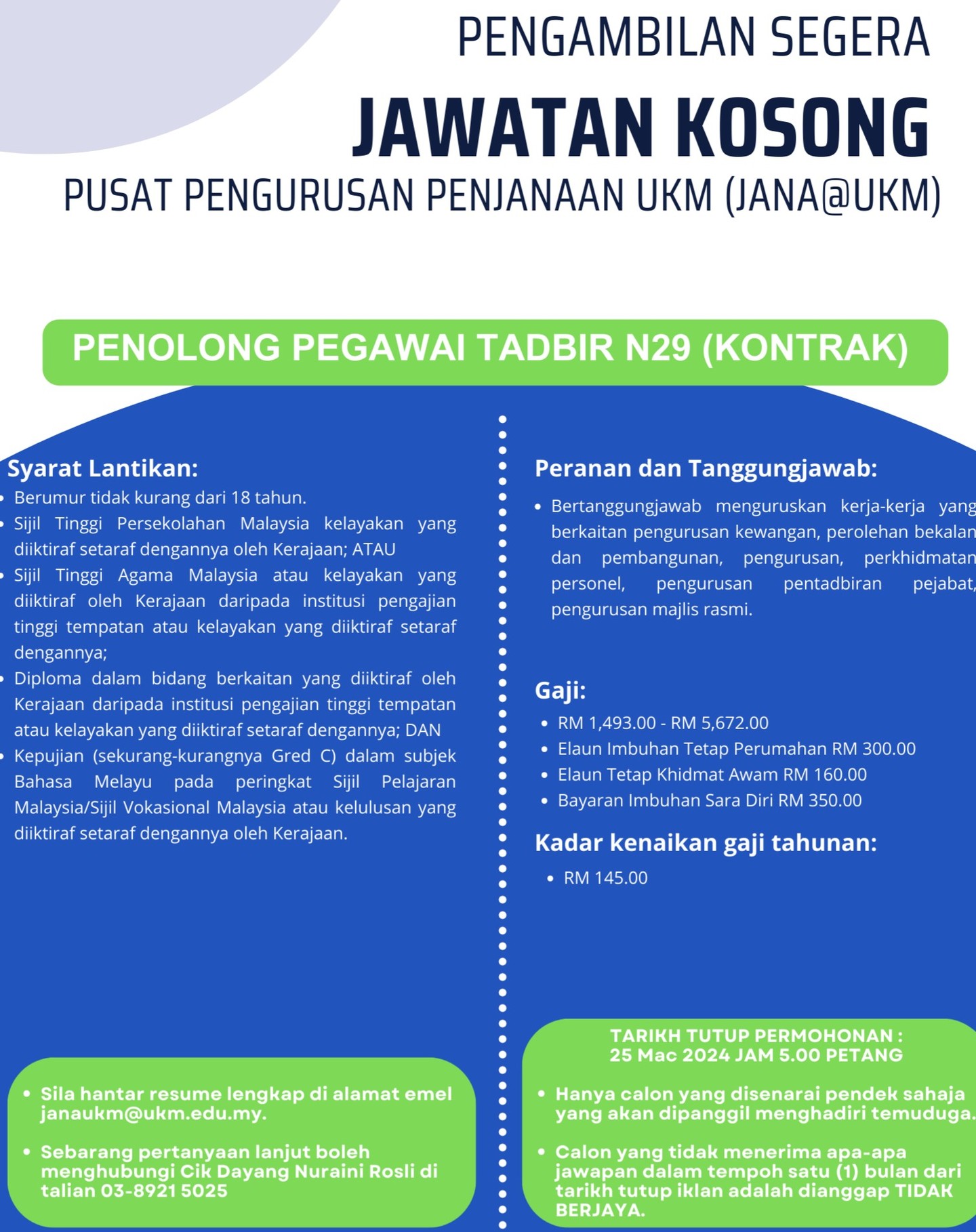Iklan Jawatan Pusat Pengurusan Penjanaan UKM (JANA@UKM)