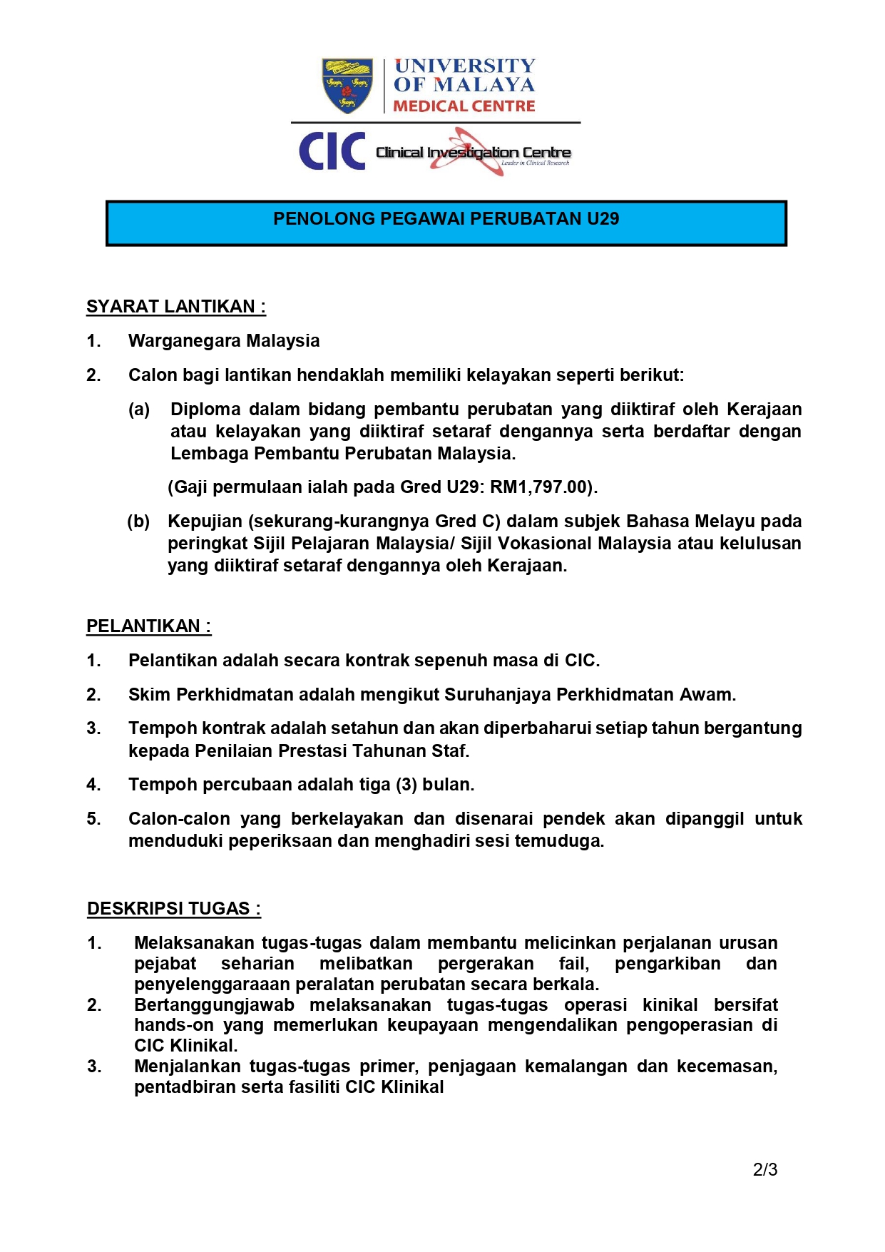 Iklan Jawatan Pusat Perubatan Universiti Malaya (PPUM)