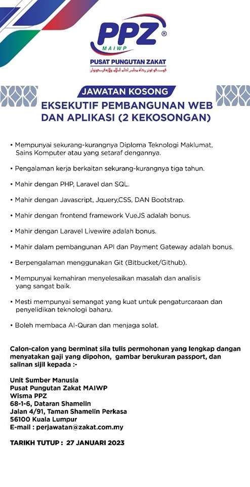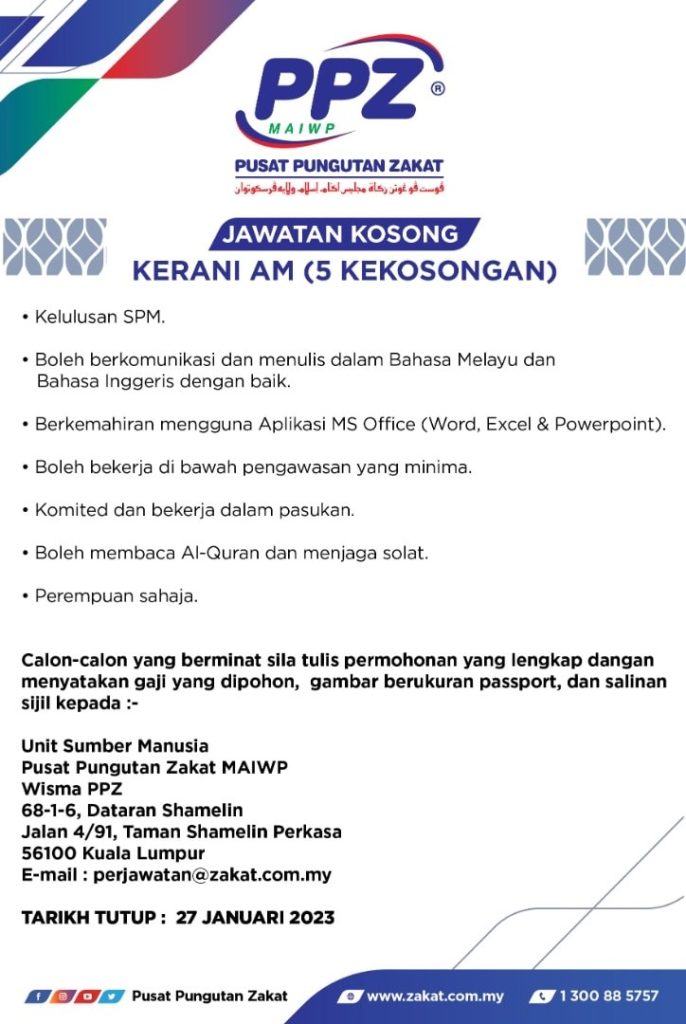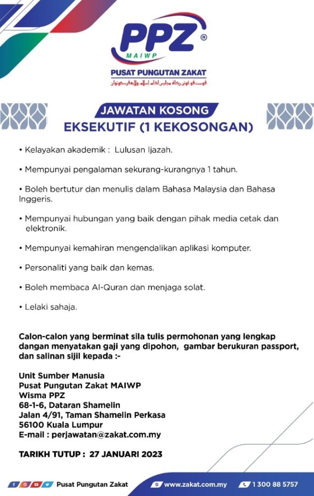 Iklan Jawatan Pusat Pungutan Zakat PPZ (MAIWP)