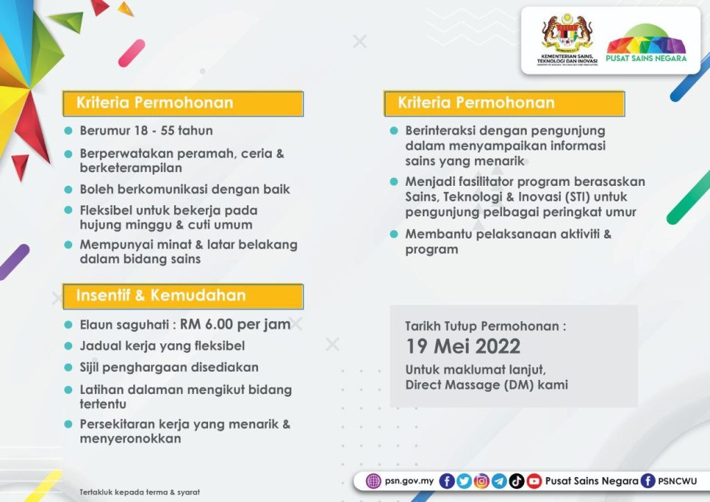 Iklan Jawatan Pusat Sains Negara Cawangan Wilayah Utara (PSNCWU)