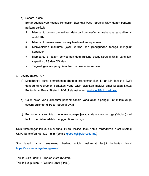Iklan Jawatan Pusat Strategi, Universiti Kebangsaan Malaysia (UKM)