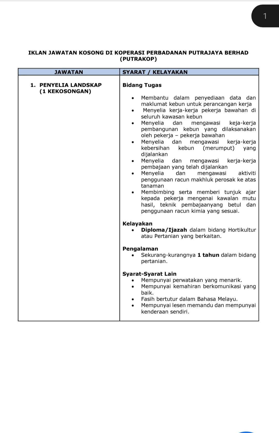 Iklan Jawatan Koperasi Perbadanan Putrajaya Berhad (PutraKop)