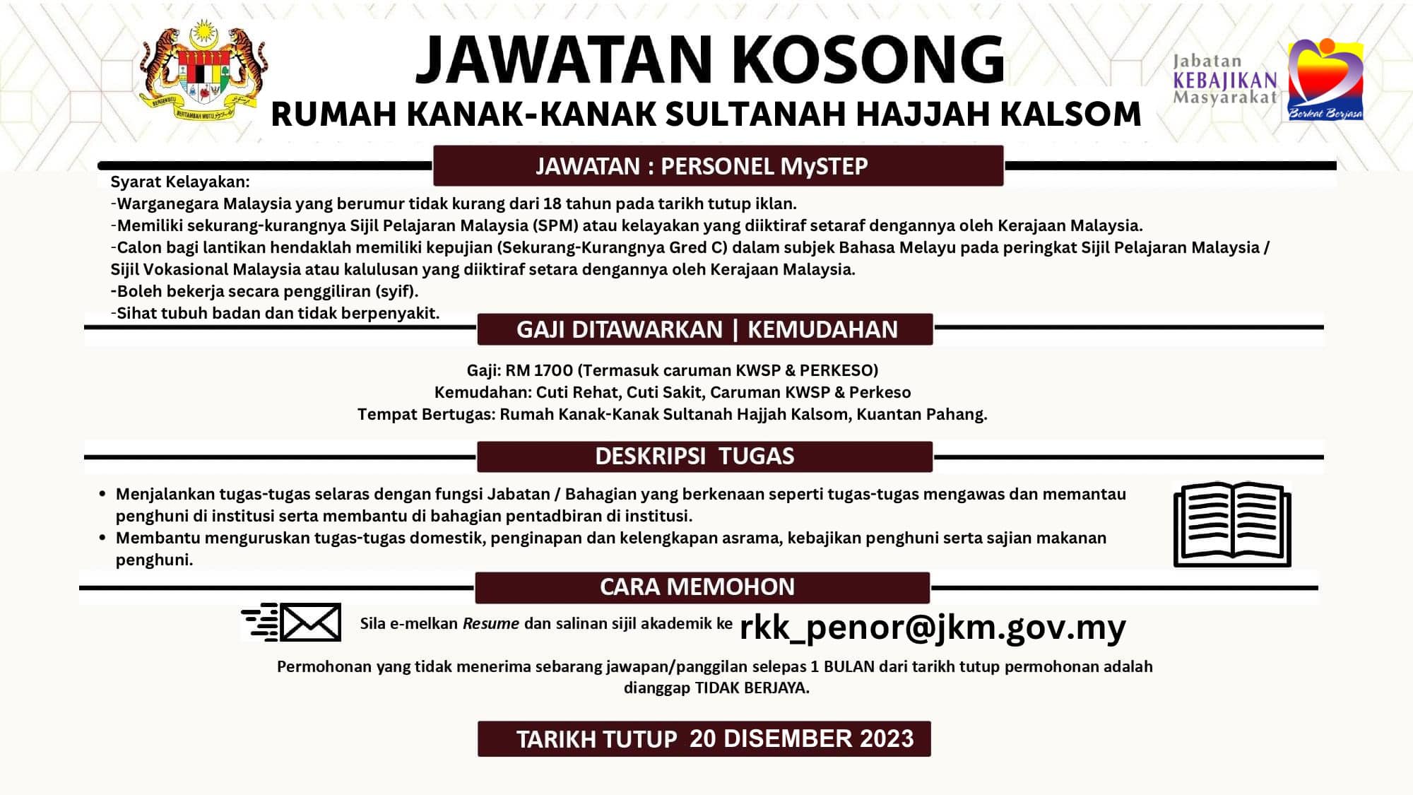 IKLAN JAWATAN RUMAH KANAK-KANAK SULTANAH HAJJAH KALSOM Jabatan Kebajikan Masyarakat (JKM)