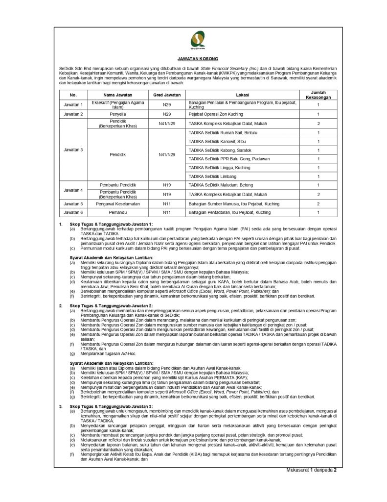 Iklan Jawatan SeDidik Sdn Bhd