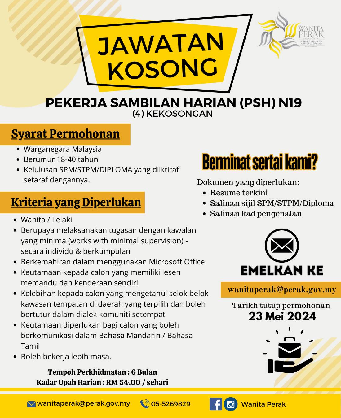 Iklan Jawatan Sekretariat Pembangunan Wanita & Masyarakat Negeri Perak