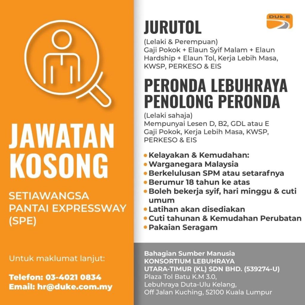 Iklan Jawatan Setiawangsa Pantai Expressway (SPE)