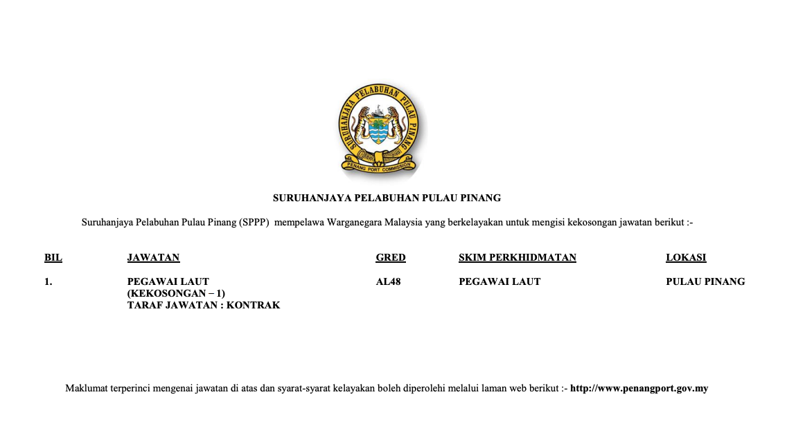 Iklan Jawatan Suruhanjaya Pelabuhan Pulau Pinang