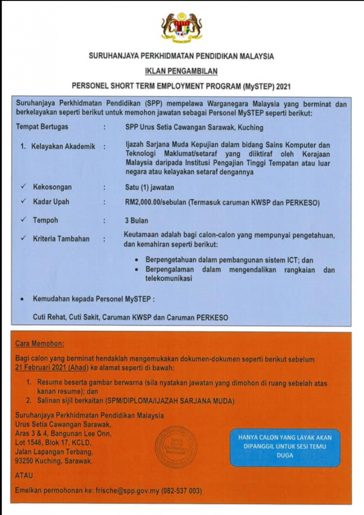 Iklan Jawatan Suruhanjaya Perkhidmatan Pelajaran (SPP)
