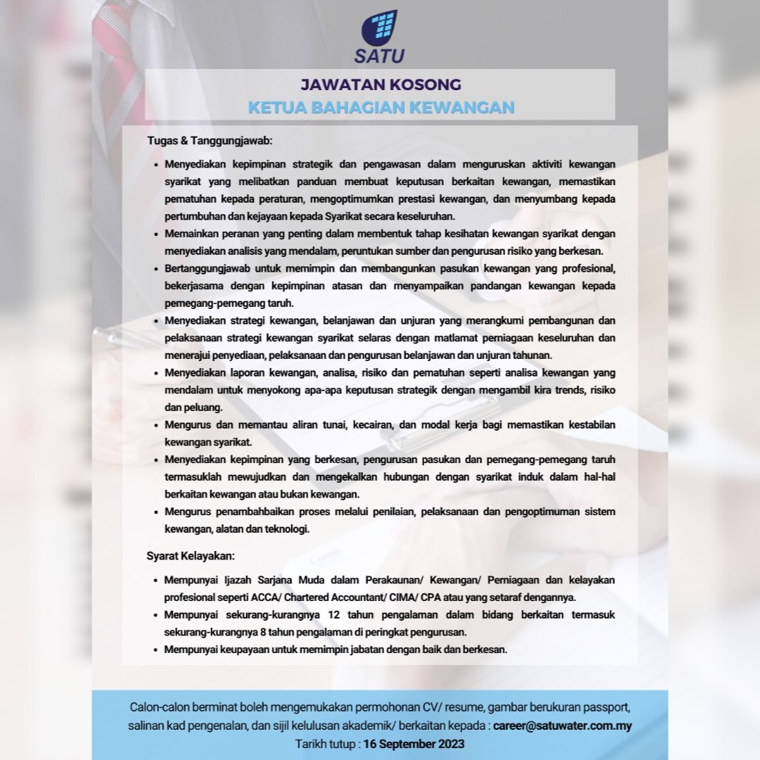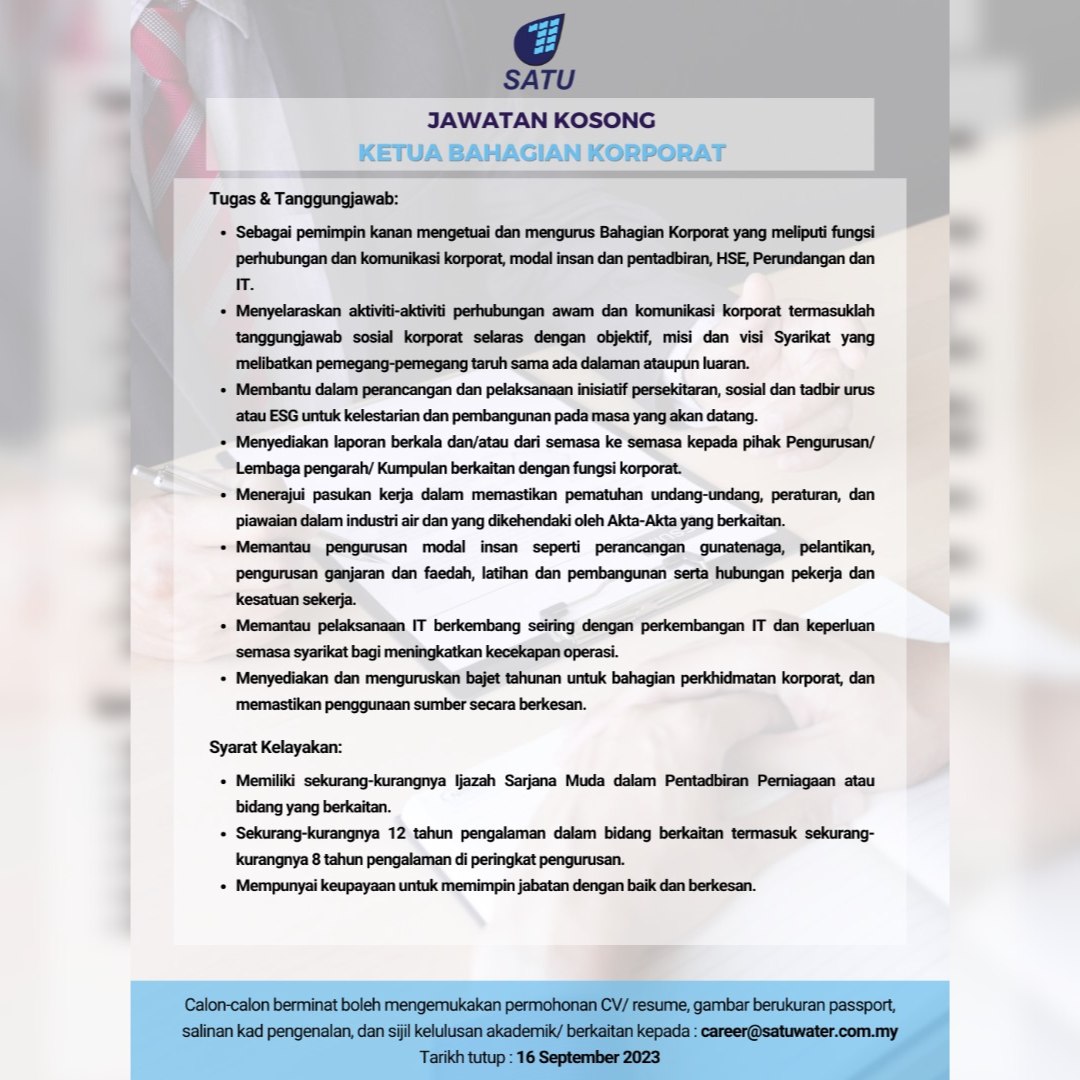 Iklan Jawatan Syarikat Air Terengganu Sdn Bhd