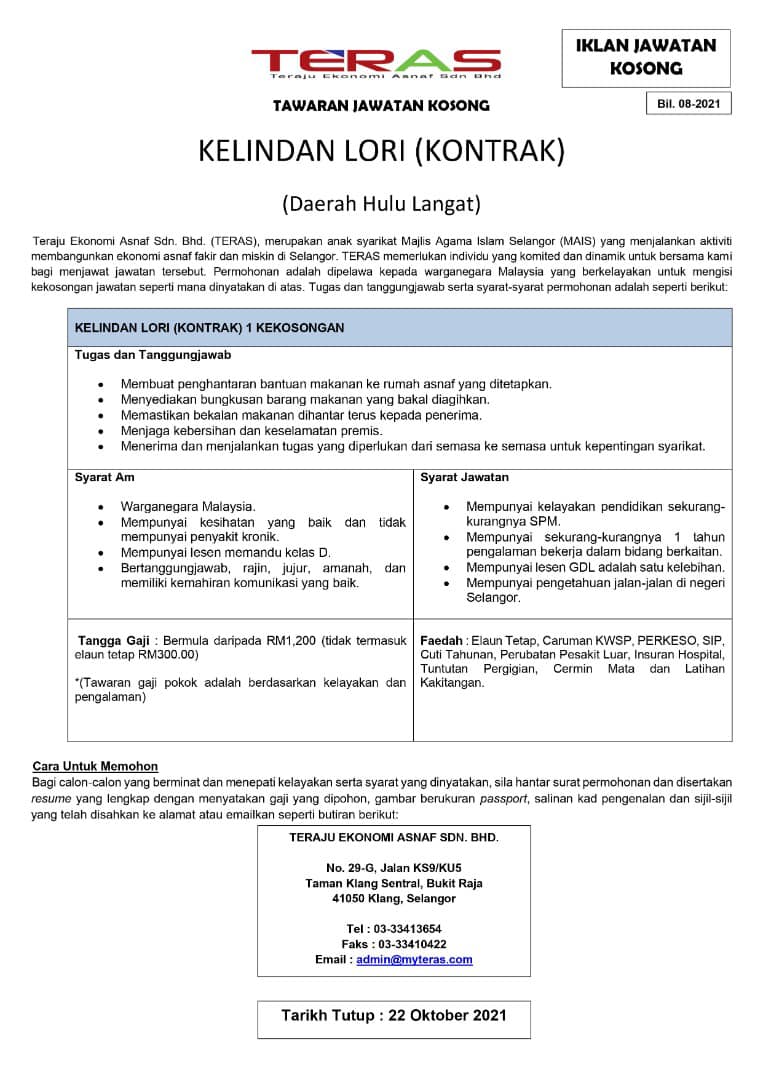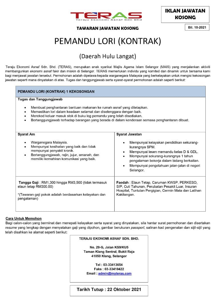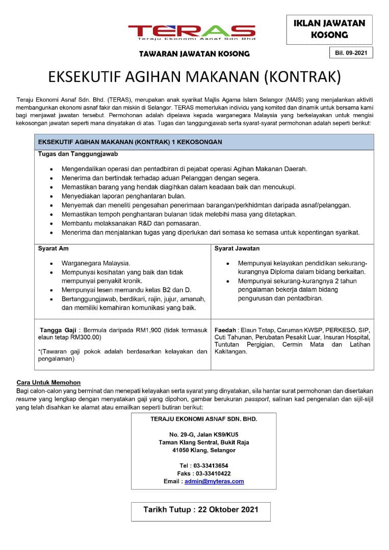 Iklan Jawatan Teraju Ekonomi Asnaf Sdn Bhd (TERAS)