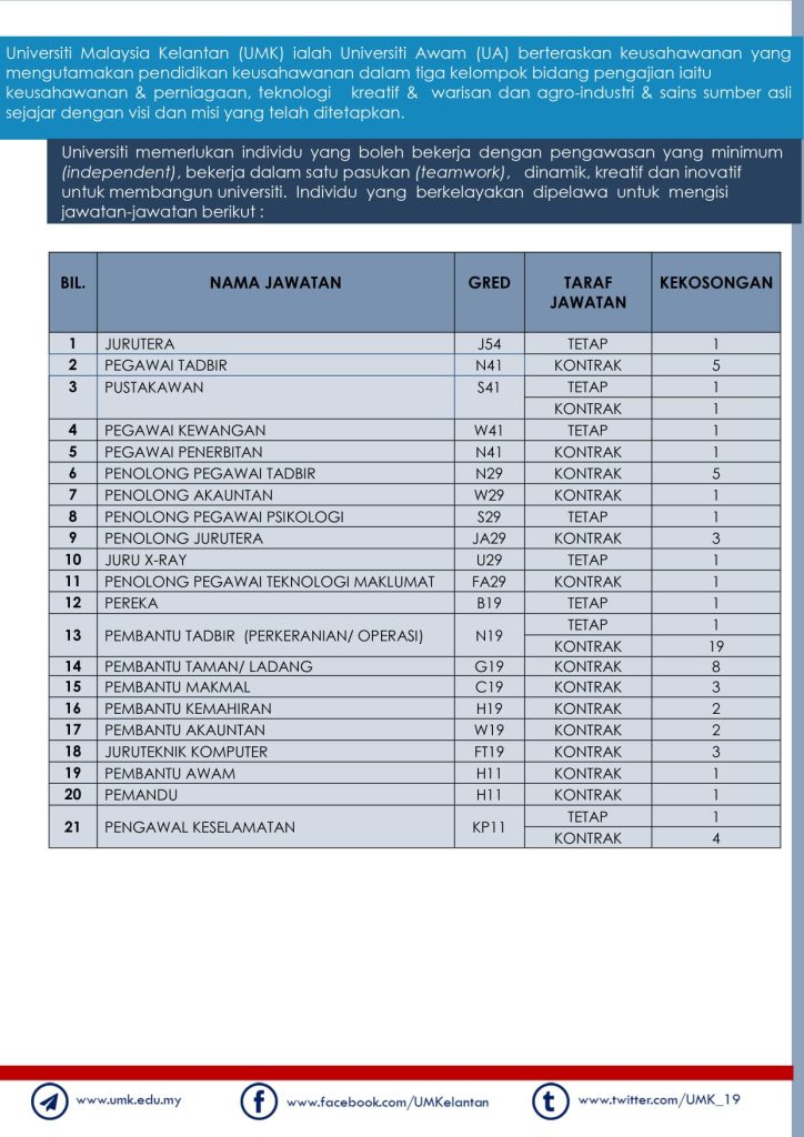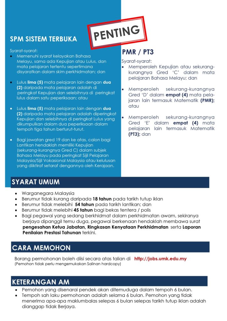 Iklan Jawatan Universiti Malaysia Kelantan (UMK)