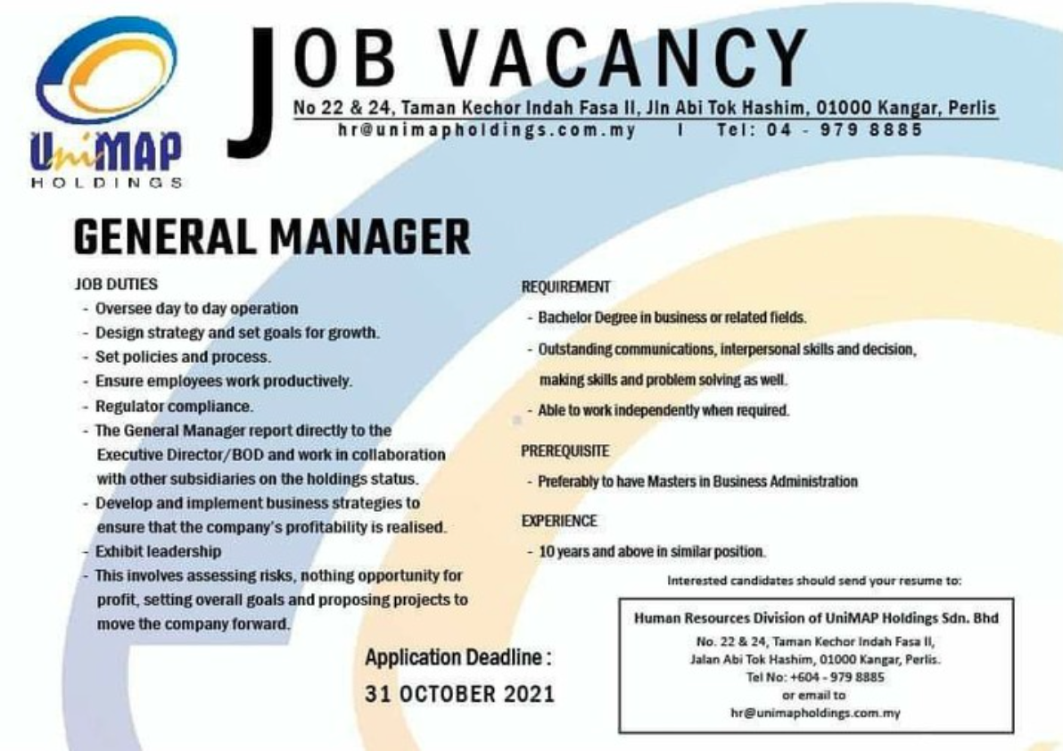Iklan Jawatan UniMAP Holdings Sdn Bhd