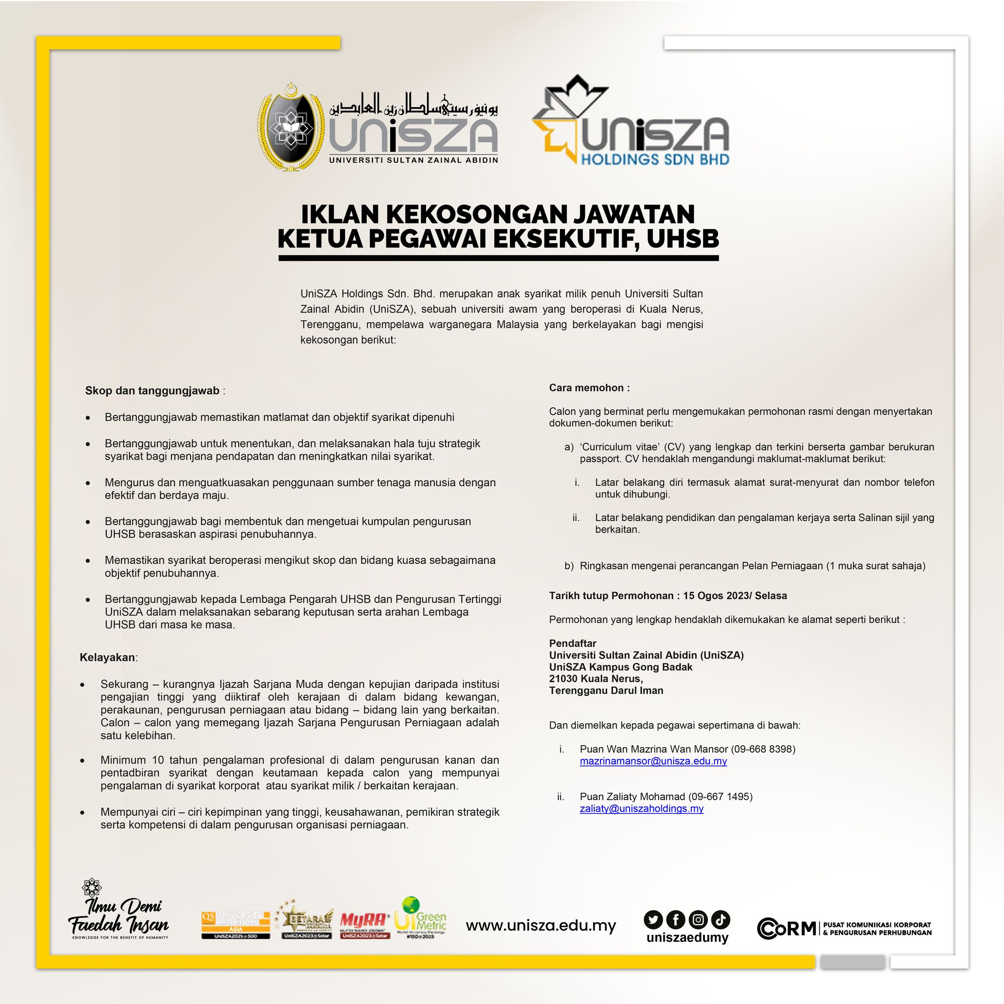 Iklan Jawatan UniSZA Holdings Sdn. Bhd