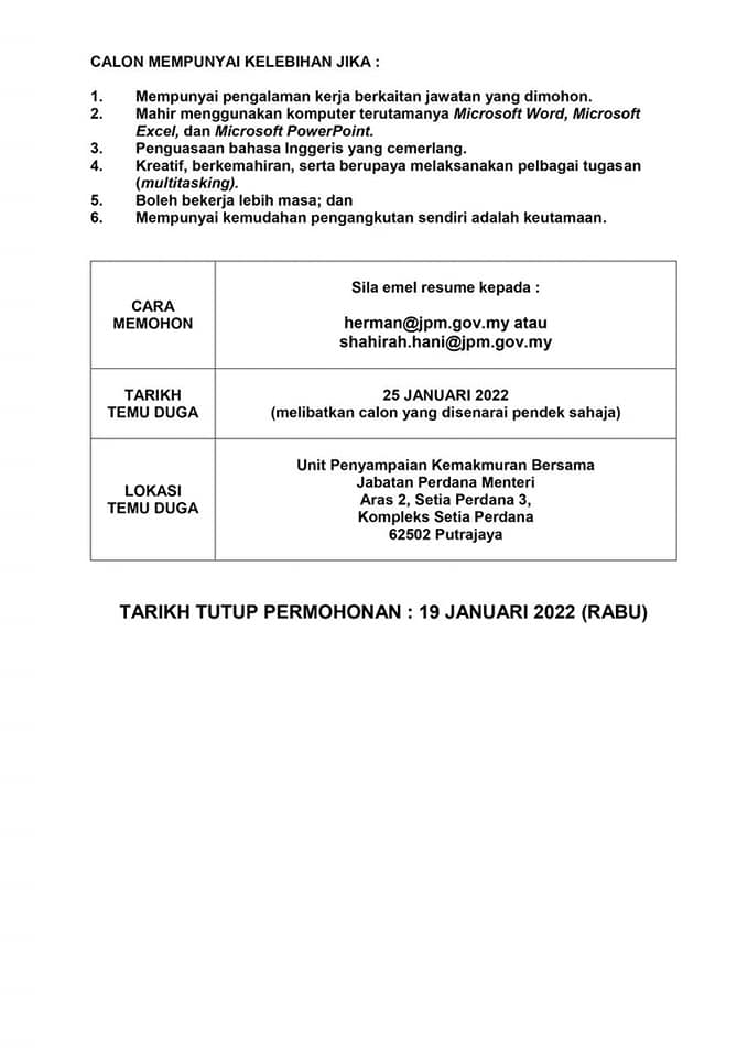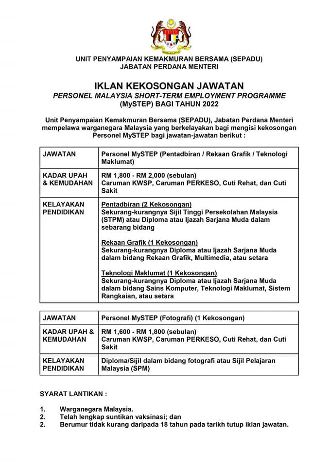Iklan Jawatan Unit Penyampaian Kemakmuran Bersama (SEPADU)
