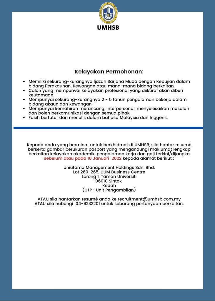 Iklan Jawatan Uniutama Management Holdings