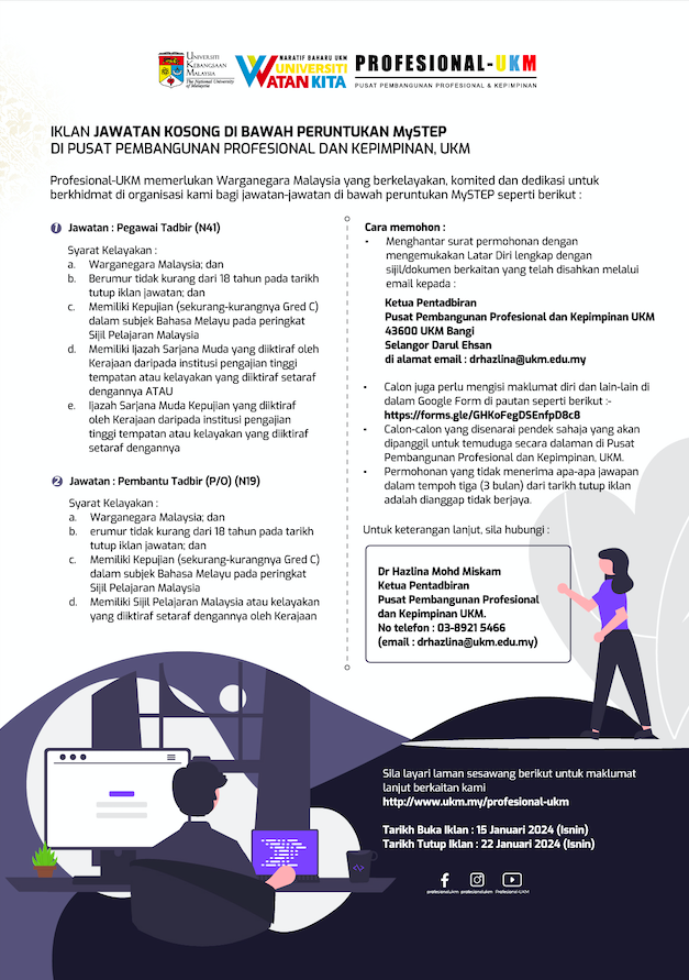 Iklan Jawatan Kosong Di Bawah Peruntukan MySTEP Di Pusat Pembangunan Profesional Dan Kepimpinan, UKM