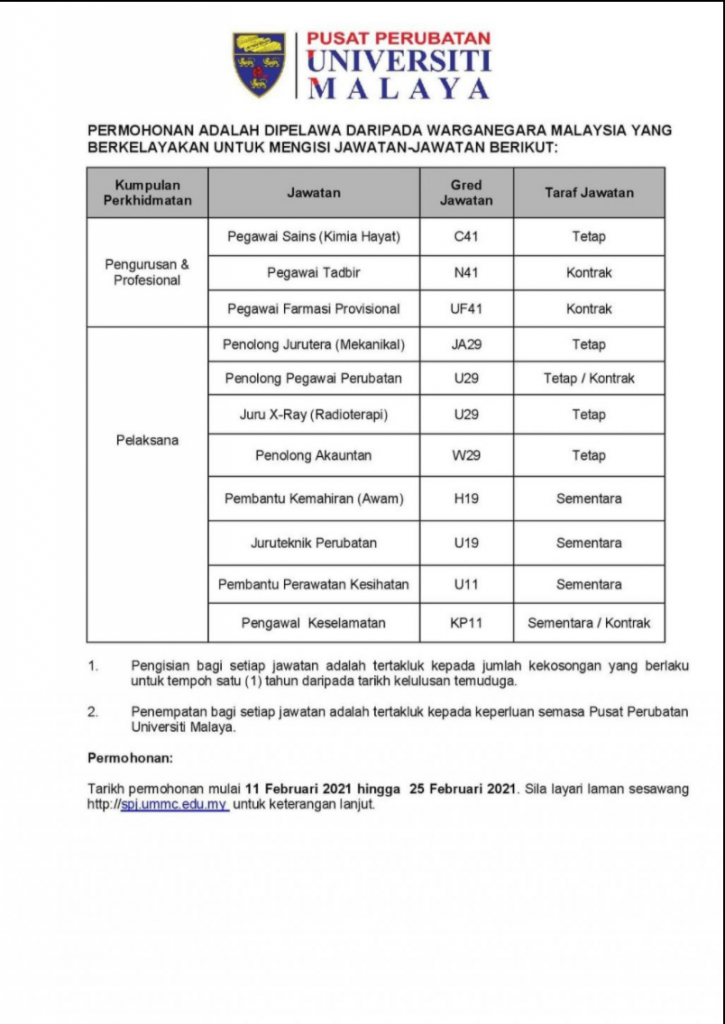 Iklan Jawatan Universiti Malaya
