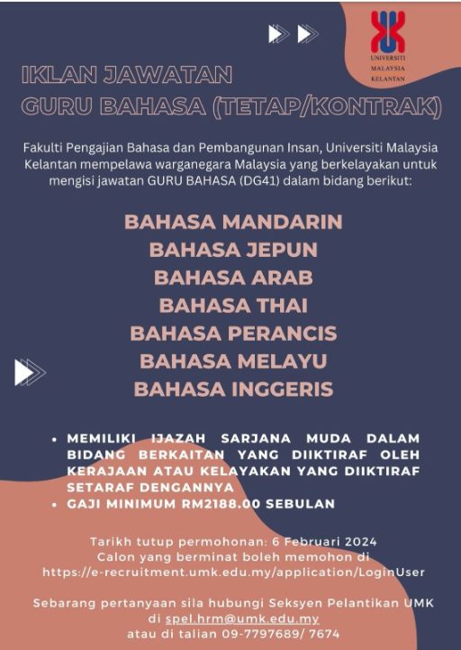 Iklan Jawatan Universiti Malaysia Kelantan (UMK)