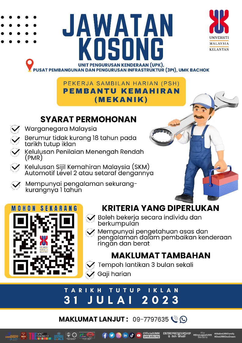 Iklan Jawatan Universiti Malaysia Kelantan (UMK)