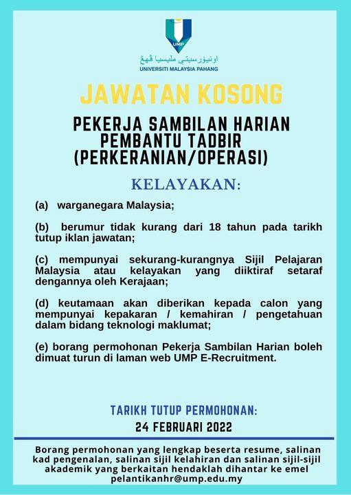 Iklan Jawatan Universiti Malaysia Pahang (UMP)