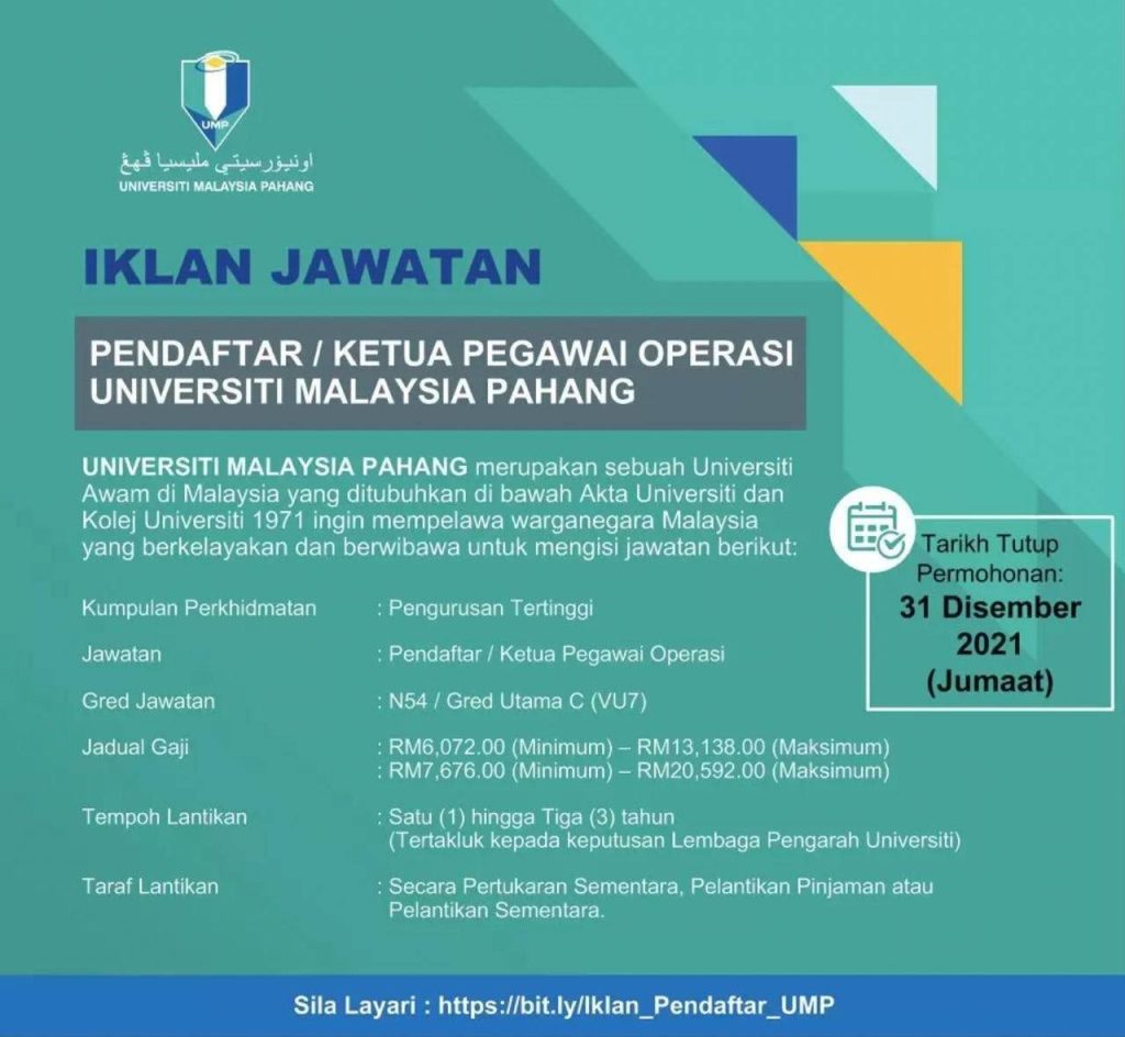 Iklan Jawatan Universiti Malaysia Pahang (UMP)