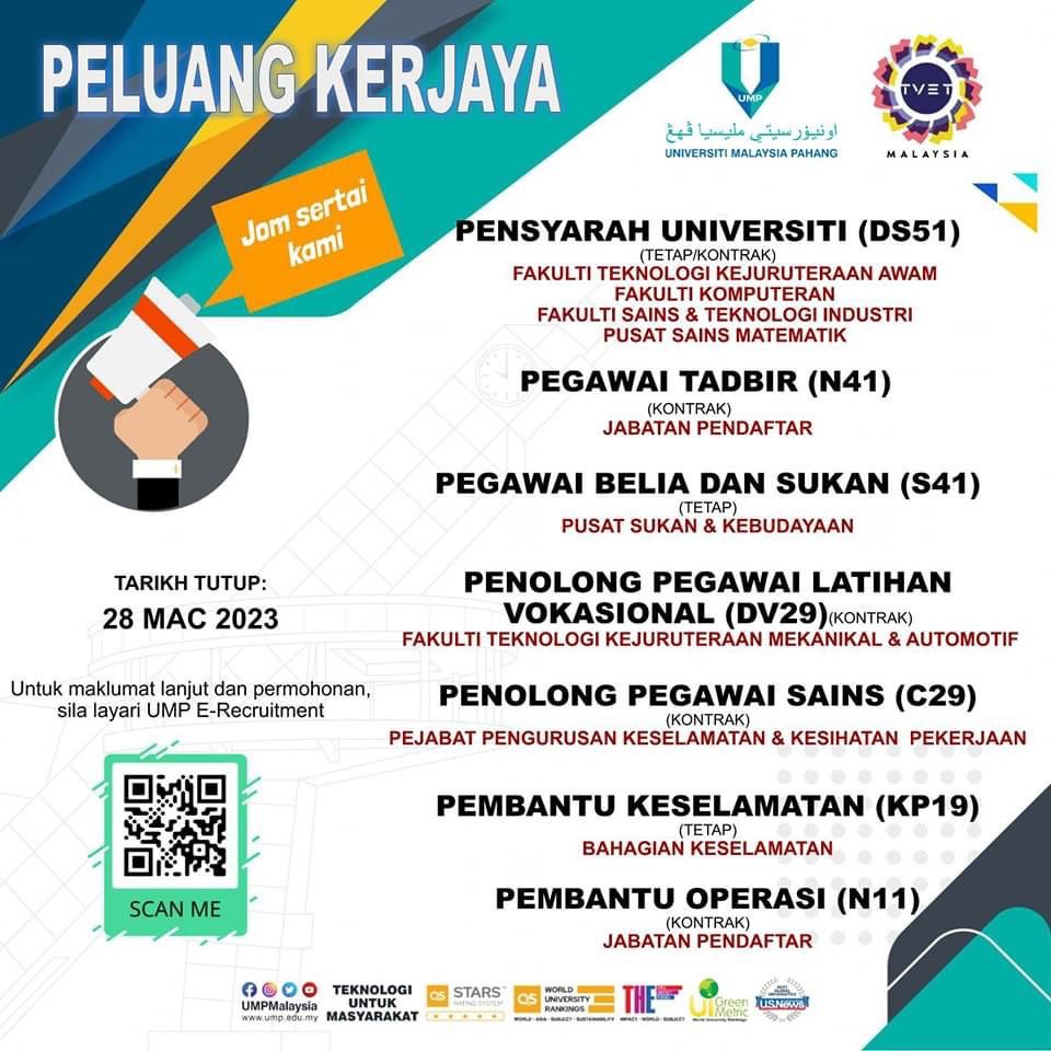 Iklan Jawatan Universiti Malaysia Pahang (UMP)