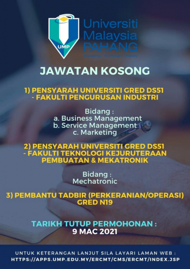 Iklan Jawatan Universiti Malaysia Pahang (UMP)