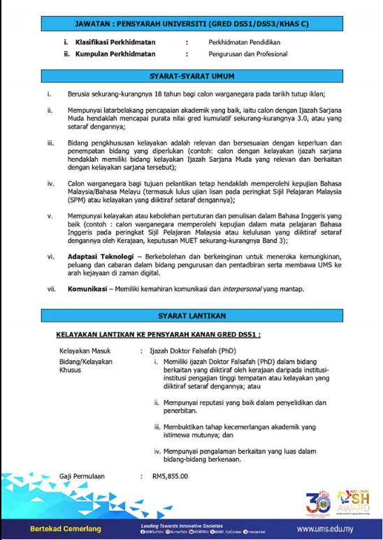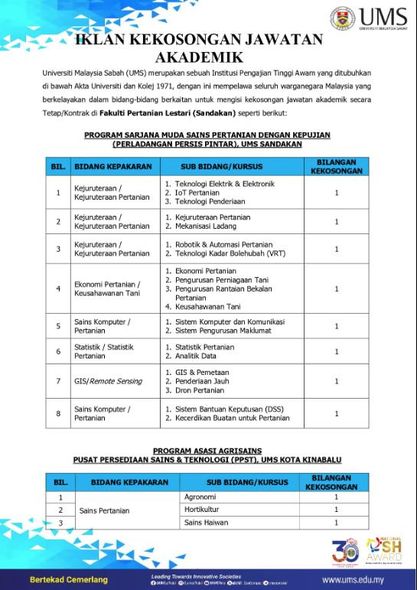 Iklan Jawatan Universiti Malaysia Sabah (UMS)