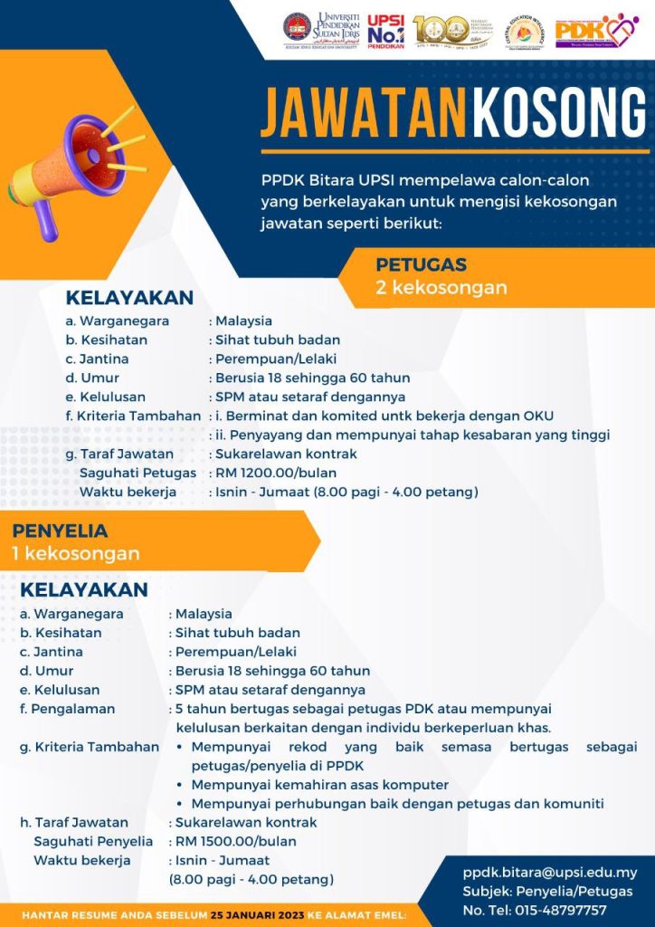 Iklan Jawatan Universiti Pendidikan Sultan Idris (UPSI)