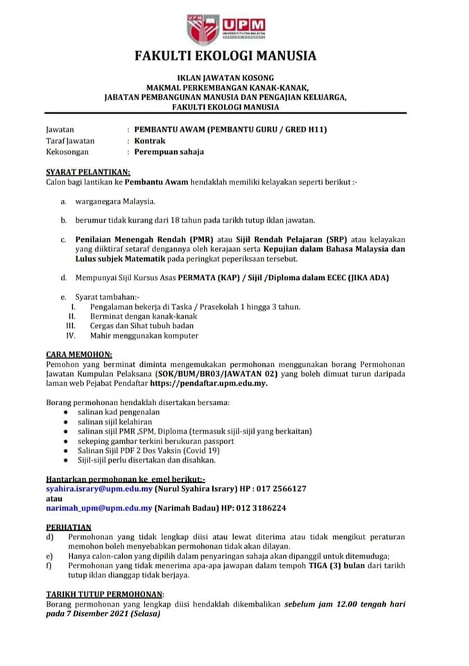 Iklan Jawatan Universiti Putra Malaysia (UPM)
