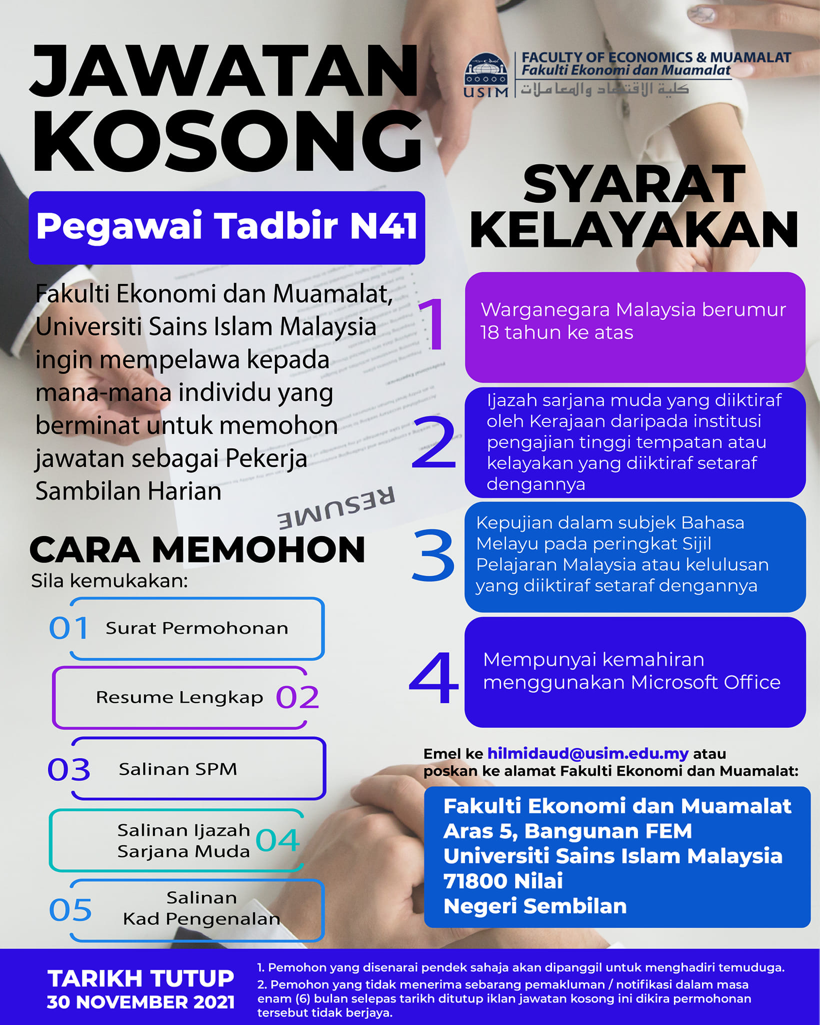 Iklan Jawatan Universiti Sains Islam Malaysia (USIM)