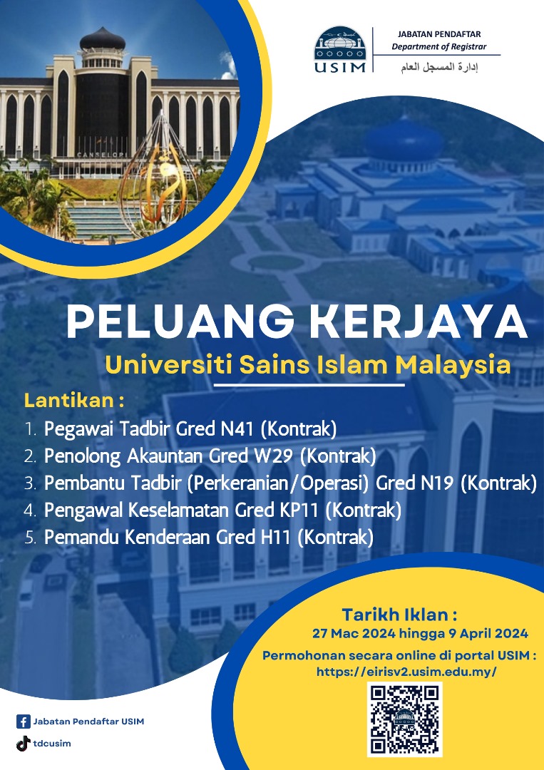 Iklan Jawatan Universiti Sains Islam Malaysia (USIM)