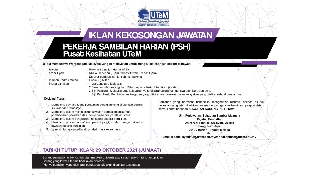 Iklan Jawatan Universiti Teknikal Malaysia Melaka (UTEM)