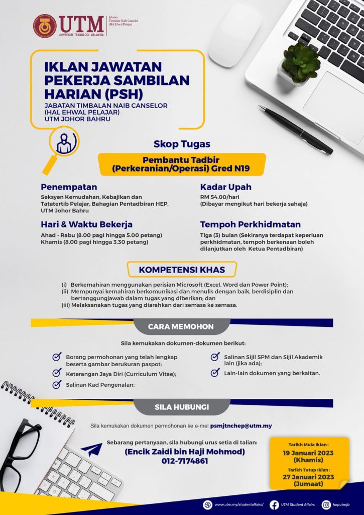 Iklan Jawatan Universiti Teknologi Malaysia (UTM)
