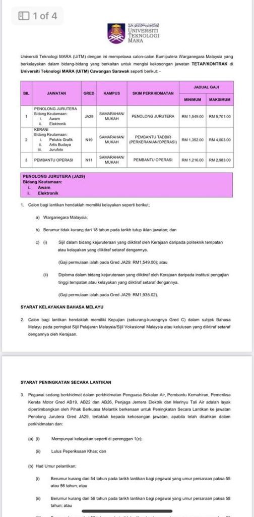 Iklan Jawatan Universiti Teknologi MARA (UiTM)