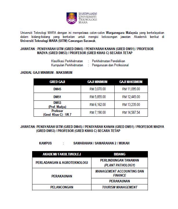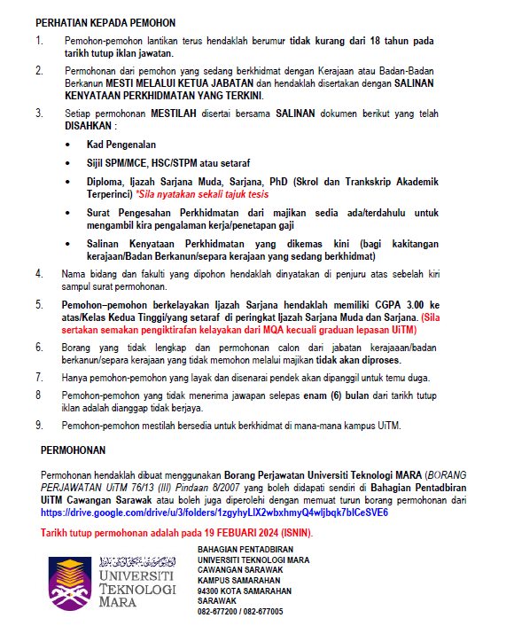 Iklan Jawatan Universiti Teknologi Mara (UiTM) Cawangan Sarawak