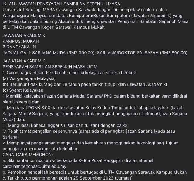 Iklan Jawatan Universiti Teknologi Mara (UiTM) Cawangan Sarawak