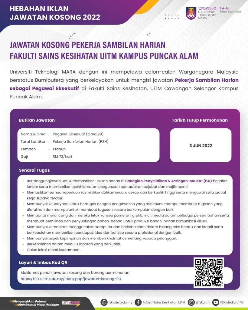 Iklan Jawatan Universiti Teknologi Mara (UiTM) Cawangan Selangor (UCS), Kampus Puncak Alam