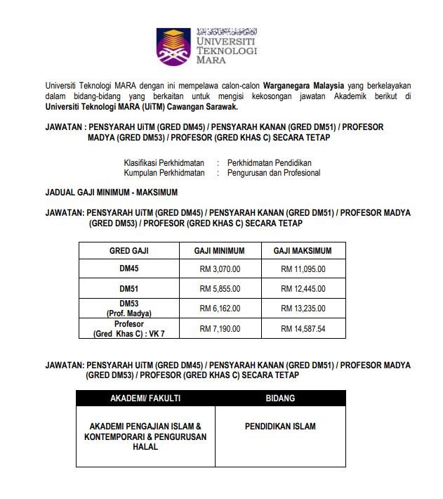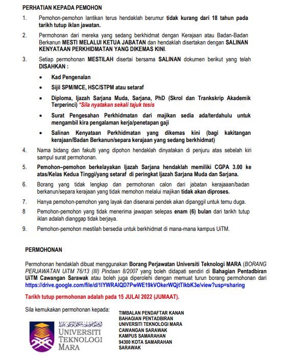 Iklan Jawatan Universiti Teknologi Mara (UiTM) Sarawak
