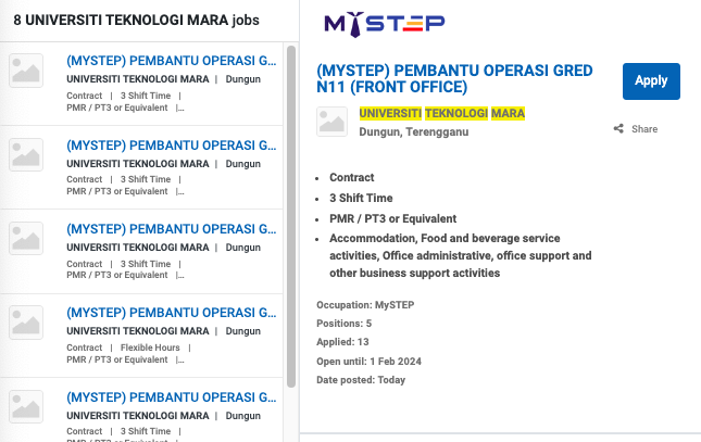 Iklan Jawatan Universiti Teknologi Mara (UiTM) Terengganu