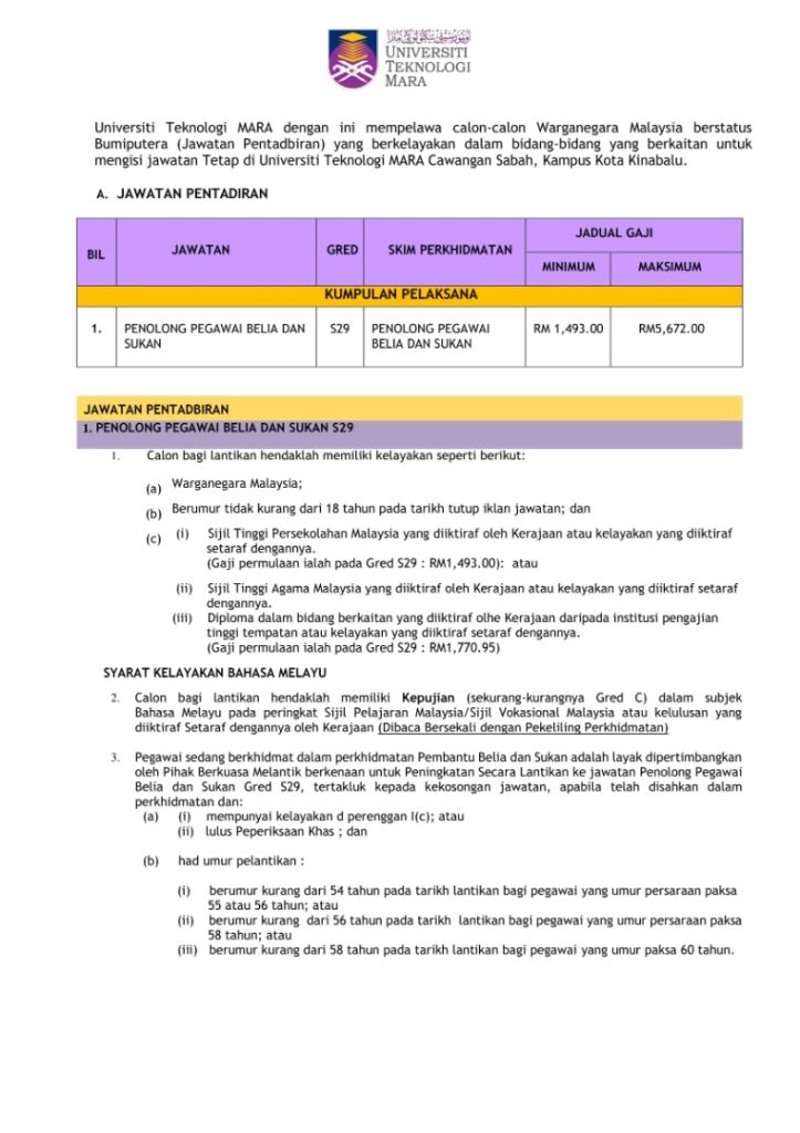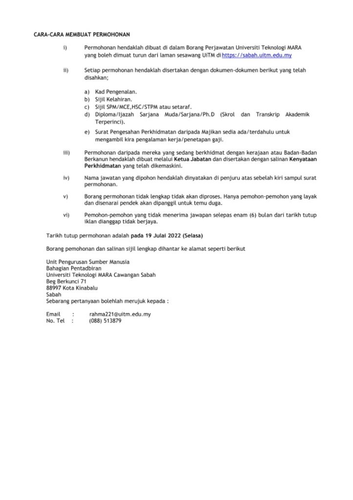 Iklan Jawatan Universiti Teknologi Mara (UiTM)